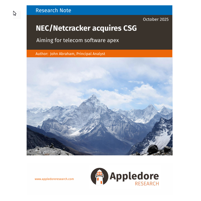 Topics within scope of this research include: customer experience, 5G monetization, ecosystems and marketplaces, telco enterprise engagement, cloud architecture, SaaS delivery models, Telco-as-a-Platform, digital transformation, benchmarking.