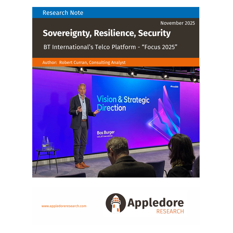 Subscription Sovereignty, Resilience, Security – BT International BT’s annual Focus event is an excellent opportunity to hear both about and from some of BT’s most… Published: 24/11/2025 Subscription Mplify GNE 2025 Appledore Research attended the Mplify (formerly MEF) Global NaaS Event “GNE” November 10-12, 2025, held at Live! By… Published: 24/11/2025 Subscription Nokia Threat Intelligence Report 2025 Nokia’s 11th Threat Intelligence Report, based on operational data and insights from over 160 CSP security professionals, and its Bell… Published: 17/11/2025 Subscription AWS in Telecom: Analyst Day Candid, first-hand insights from AWS’s Telco Industry Analyst Day (October 2025), where AWS’s leadership and its leading partners… Published: 07/11/2025 Free Swisscom Autonomy Blueprint Swisscom concluded that the only way to achieve network autonomy (network automation and closed-loop control) was to first… Published: 28/10/2025 Subscription Digital Twins and Agentic AI Digital twins are the key enabler of trust in agentic decision-making in CSP networks There is a high… Published: 21/10/2025 Subscription Building Better Digital Twins The idea of a digital twin for telecom has seen a surge of interest in the last 18… Published: 13/10/2025 Subscription Digital Twin Primer Appledore Research’s Telecom Digital Twin Primer offers an introduction to the essential components and concepts of a digital… Published: 03/10/2025 Subscription Principles for Successful Autonomic Networks, Part 3: Market and Vendor Landscape Telecom is progressing from abstract concepts to practical implementation, with organizations such as TM Forum and ETSI emphasizing… Published: 10/09/2025 Free Amdocs Mobile Network Services This report shines a spotlight on a lesser-known, but still significant, part of Amdocs‘ business: services to automate,… Published: 08/09/2025 Subscription Nokia CNS Analyst Day 2025 On the eve of TM Forum’s Digital Transformation World 2025 Copenhagen Nokia Cloud and Network Services gave invited… Published: 05/08/2025 Subscription Indosat Ooredoo Hutchison The merger between Hutchison 3 Indonesia and Indosat Ooredoo, to form Indosat Ooredoo Hutchison (IOH), was completed in January 2022. Successful network operator… Published: 02/07/2025 1 2 3 … 14 Next
